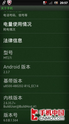 目前,索尼Xperia MT27i搭载的还是Android 2.3版本系统,不过Xperia手机一向在系统升级上都很具优势,这款手机应该可以在不久会升级到Android 4.0系统。