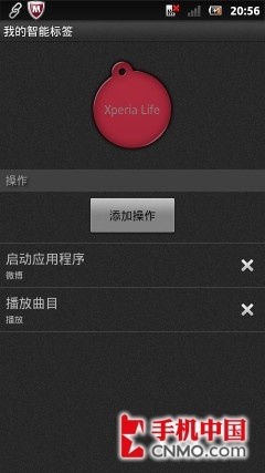 Xperia MT27i的智能标签设置与摩托罗拉的“智能操作”功能非常相近,都是通过一定的事件来启动系统的功能或硬件。所不同的是,MT27i的事件就是每张NFC智触卡。我们只需要将智触卡与手机背后的NFC区域相碰撞,即可实现事件的激活。