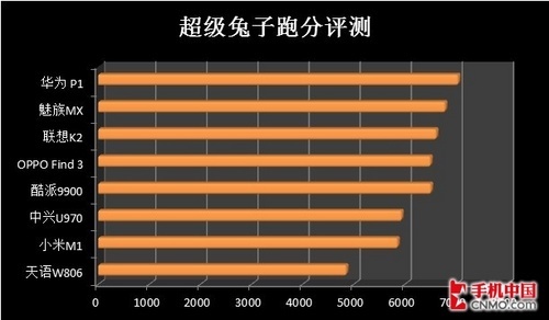 而小米、天语W806和OPPO Find 3则属于第二梯队,测试结果处于同一水平。
