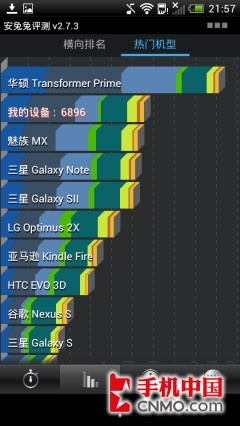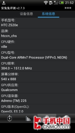 而在安兔兔测试中,HTC One S的分数就暴露出骁龙S4处理器核心异步的劣势了。虽然骁龙S4处理器虽然制程仅有28纳米,有着不错的效率,不过其结构依旧算是aSMP(异步双核)在 高负荷状态下两核心之间的协助还是稍有不足。所有One S的得分还是低于了采用Tegra 3四核处理器的One X。
