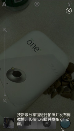 作为新浪微博定制手机,行货版的HTC One S与One V一样,都可以通过专属的微博键一键微博。一般情况下,我们触动微博键会直接调出手机的微博界面,编写微博,而长按微博键则会启动位置微博来查看周边微博 的微博内容。而在相机界面,如果我们长按微博键,手机将进入视频拍摄状态,拍摄完成后,这段视频将自动被转换成GIF动态图被插入微博中,这个原生的视频 分享功能也是立刻让一切第三方视频软件成为了浮云。