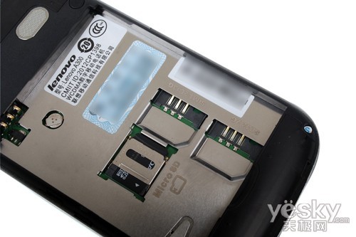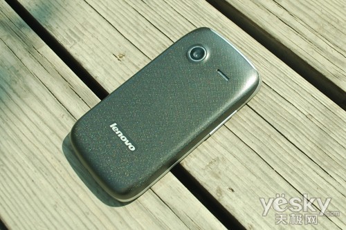 机身背面设计十分简洁,背面顶端内置了320万像素摄像头。背面下方应有联想英文Logo。后盖采用微弧形设计,很好的贴合了手型,即使是女性用户也可轻松完成单手操作。并且采用高密度防滑纹设计,增大摩擦力的同时避免了指纹沾染问题。