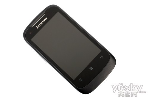 联想A300正面使用了一块3.5英寸26万色电容屏,分辨率为480×320像素,虽然分辨率稍显不足,但整体显示效果出色。屏幕上方为联想英文Logo。屏幕下方使用了Android手机传统的“三热键”设计,从左到右分别为:功能键、Home键和返回键。