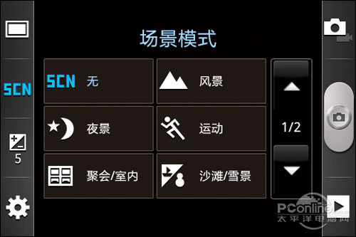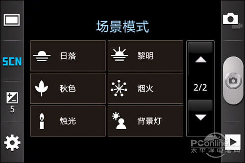 相机的场景模式提供用户多个选择,这一定程度上弥补了相机在硬件条件下的先天性不足,增加了它的可操控性。