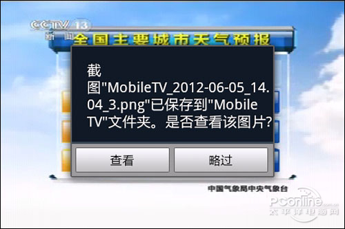 用户可以在观看电视节目的时候进行截图,留住精彩的一刻并保存下来,这是我们在一般电视上做不不到的,除了便利性外,相信这也是CMMB手机电视相对于传统电视的优势。