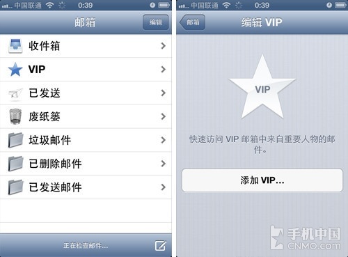 邮件功能在本次升级中得到了大幅度更新,不过这个功能在中国并不受重视,此次更新主要加入的功能就是VIP,可以在VIP中加入联系人,这样查看会变得更为方便。