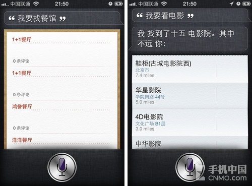 使用中文进行餐馆信息的查询,Siri还是没有问题的,不过周围的餐馆距离实在是有些远。