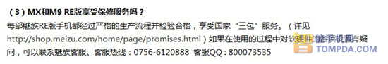与用户关系最直接的除了产品质量,最重要的就是官方提供的服务了,在提供好产品后能不能再提供与产品水平相匹配的高水准服务,对于RE版产品来说尤为关键。那RE版魅族MX/M9能够享受与原版相同待遇的服务么?