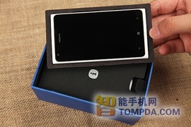 外包装延续了N9以及Lumia800的风格,采用抽拉式的设计,虽然Lumia900的尺寸很大,但包装盒则相当迷你。