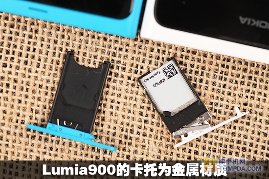 机身顶部,Lumia900没有MicroUSB防尘盖,Lumia800设置在机身背部的第二麦克风在Lumia900上被设置在机身顶部。SIM卡卡托,Lumia800为塑料材质,而Lumia900为金属材质。