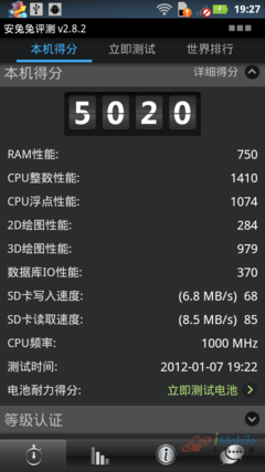 总体配置上不算太抢眼,意法的CPU瞄准的是中低端的产品,这也使摩托罗拉XT760价格优势更加明显。从跑分来看只能算是入门级别的双核手机。与LG 2X等早期双核机型性能性差不多。但支持1080p视频的编码解码,娱乐功能比较强悍。但是与三星猎户座提供的官方数据有一些差距。5点触摸中规中矩。