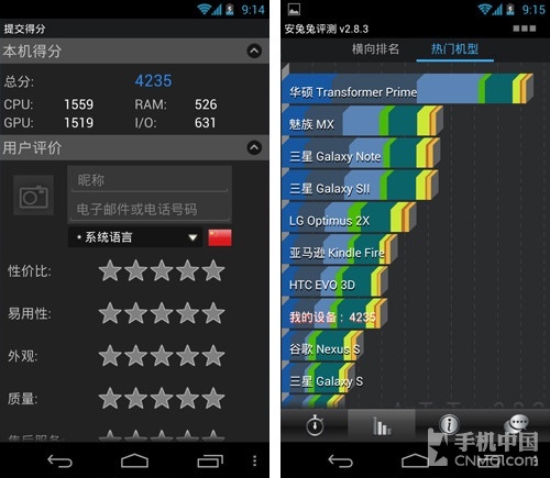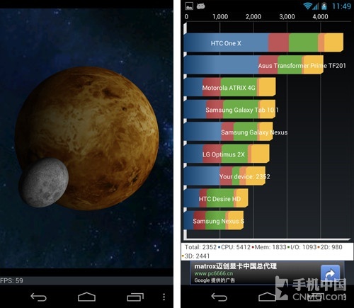 性能表现怎么样呢?我们安装了两款常用的跑分软件来测试Galaxy Nexus在Android 4.1下的跑分。