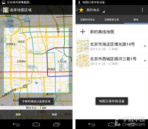 谷歌应用变化最大的是谷歌地图,地图支持了离线,你可以按照区域进行离线,离线下载也有了专门的管理器用来删除下载地图缓存。