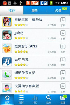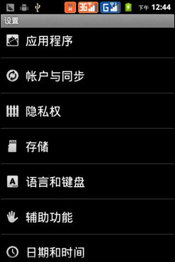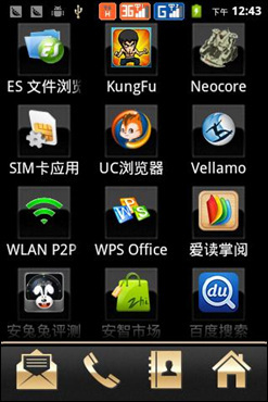打开主菜单界面,用户可以通过上下滑动的方式进行换页,每一页的图标均采用3X4的布局。