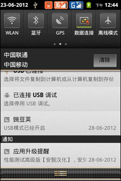 从屏幕顶部下拉可以拖曳出一个通知栏,通知栏中不仅有提醒通知还能设置快速控制按钮,允许快速打开和关闭数据、WLAN、蓝牙、铃声、屏幕旋转及其他更多的功能。
