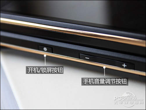 飞利浦W930机身各处细节设计做工优良,设计制造工艺都不错。机身右侧分别设置有一个锁屏/开机键和一个凹凸有致的音量调节键。