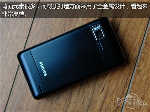 飞利浦W930背面内置有一颗500万像素的CMOS摄像头和LED闪光灯,摄像头功能强大,满足日常的拍摄需求。