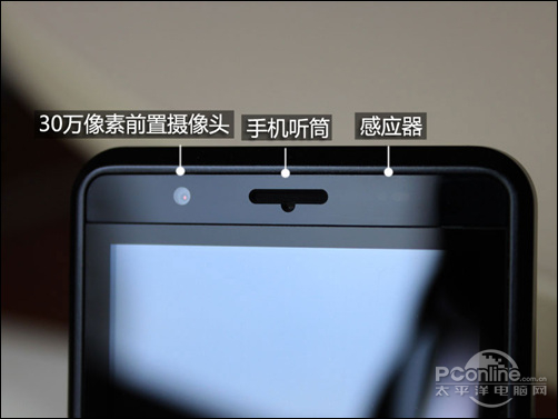 翻开手机,我们可看到在内屏的上方分别设计有一颗30万像素的前置摄像头、短小的手机听筒和光线和距离感应器,而内屏与外屏一样采用了3.2英寸的电容屏,屏幕呈镜面设计,分辨率为480x320像素。