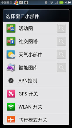 除了原生系统中常见的日历、时钟和搜索等插件外,用户还可以使用摩托罗拉为该系统定制的插件,通过这些插件用户能使桌面功能更为丰富。