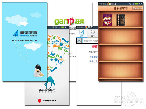 手机还内置了高德地图、去哪儿、人人网、有道词典、爱掌阅读和赶集生活等多个一般用户常用的软件,这些软件使手机的功能更为完善。