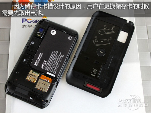 拆开电池后,我们可以看见电池仓还是比较工整的,没有让用户直接看见电路板,不过要先取出电池才能装卸存储卡就比较遗憾了。