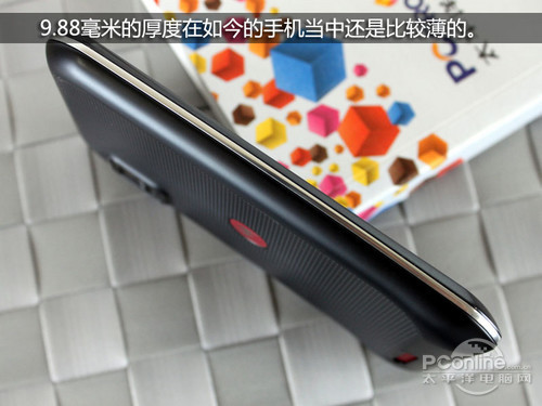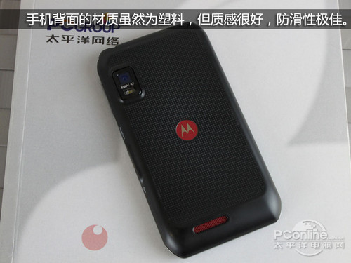 在底面我们可以看见充满活力的红色摩托罗拉标志,值得一提的是,虽然XT760未像高端机型XT910那样在后盖选用凯芙拉材质,但摸上去的感觉依然不错。不过在提高防滑性的同时也带来了弊端,那就是比较容易沾上灰尘。