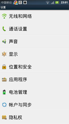 在通知栏上没有像许多Android2.3的机型那样集成多种小开关,这点就比较遗憾了,不过用户还是可以看到手机的连接状态和查看未接来电。
