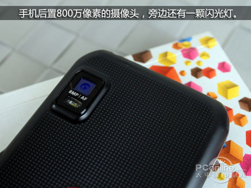摄像头和LED闪光灯模块相对于后盖表面的上半部分向外突出,但由于后盖表面的下半部分向外翘起,所以手机在放在桌面上的时候摄像头实际上是与桌面表面平行的,这样被刮花的机率还是比较大的,所以用户要注意保护好它。