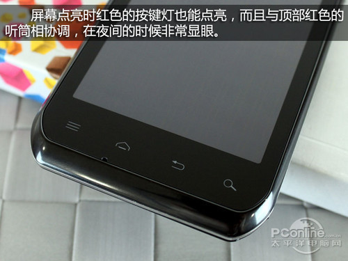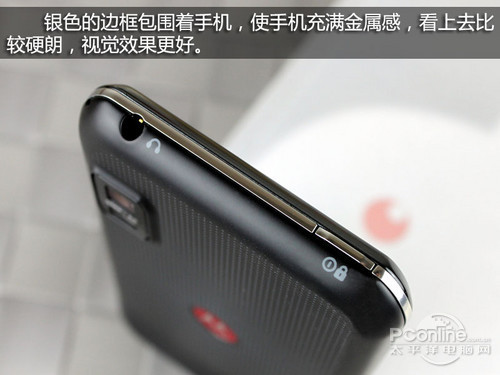 听筒设计得比较细长,配合红色的主调,给人的视觉效果很好,不过听筒表面低于手机屏幕的水平面,比较容易积聚异物,所以用户在日常使用中要注意对其的清理工作。 听筒旁边还隐藏着一颗很小的提示灯,它可以提示用户手机的充电状态和有未接来电等信息。