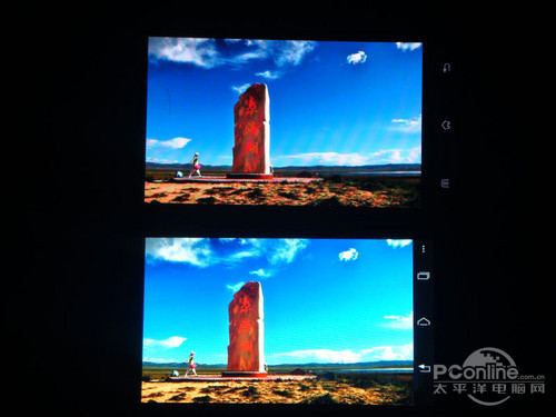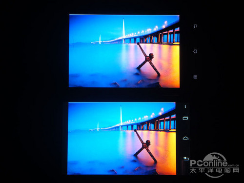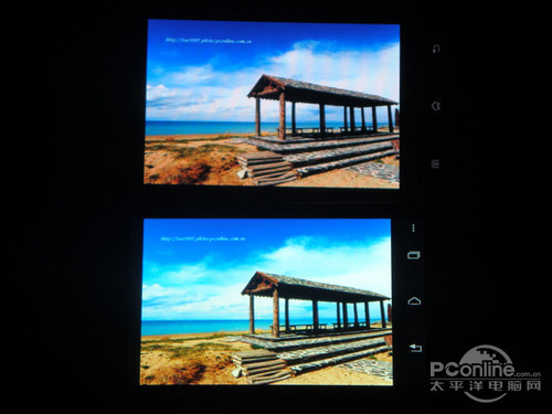 两机屏幕的对比度都比较高,屏幕画面都很清晰,但从上图我们可以看到Finder在天空颜色过渡上比XT885做得要好一些,色彩十分浓郁,把天空的蓝色显示得很迷人。