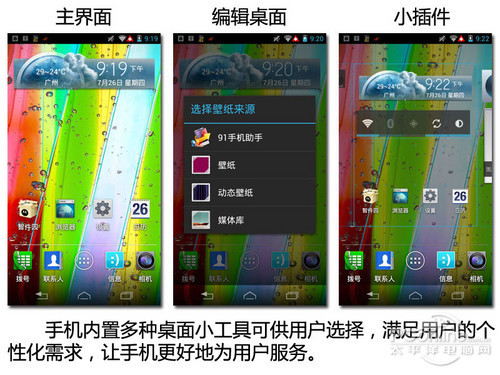 两机都有选项可供用户对自己的桌面进行个性化更改,满足不同用户的需求,Finer提供用户可选的插件数量少而精,XT885提供给用户选用的插件不论是数量还是种类都比较多。