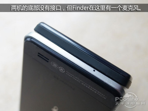 Finder没有配备储存卡插槽,图中看见的是SIM卡插槽,用户只能用Micro SIM卡,而XT885卡槽仓中左边为SIM卡插槽,右边为储存卡插槽,用户可以使用标准SIM卡。