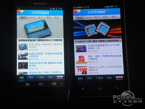 现在笔者通过拍摄太平洋电脑网客户端的界面,让大家了解一下两机屏幕细腻度的差别。