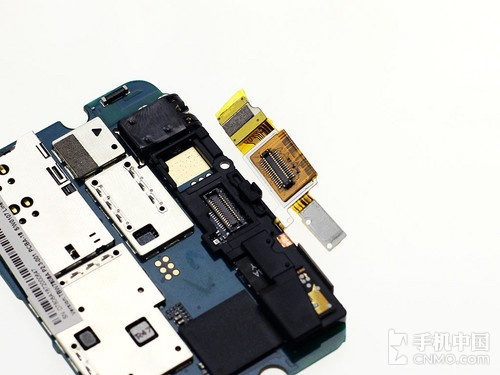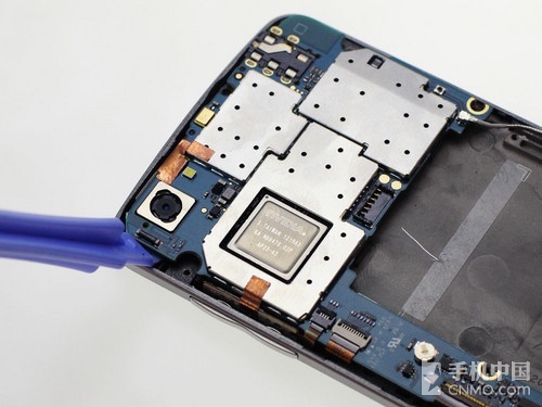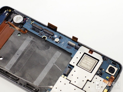 前后两枚摄像头均通过触点式插槽与主板相连接,取下方式很简单,只需向顶部位置翻动挑起即可,不过用力一定要小。