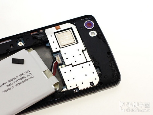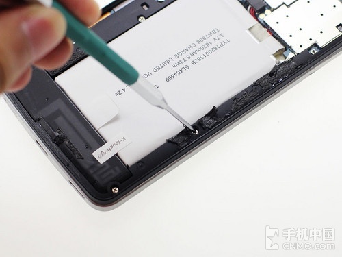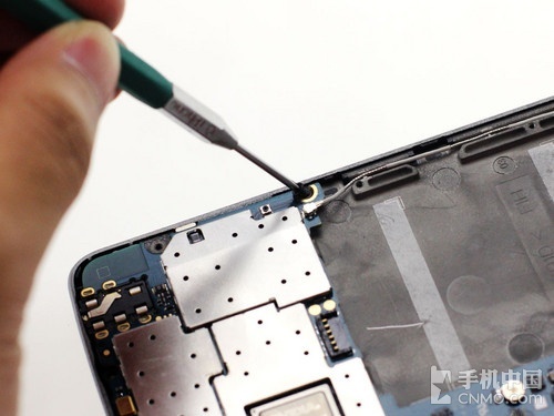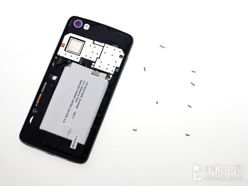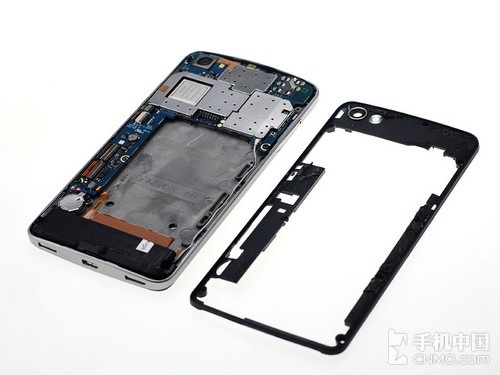 拆卸完主板之后,剩下的就是中框以及4.5英寸屏幕。二者通过卡扣方式相连,只需找到一条缝隙“趁虚而入”即可将其分离。