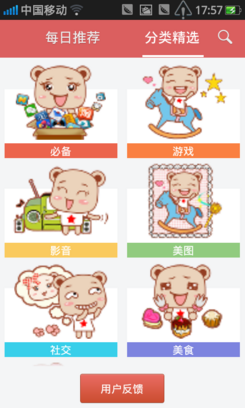 小果除了喜欢浏览时尚资讯外,也爱到软件市场“闲逛”下载一些有趣的软件、游戏。小果发现OPPO Ulike U701底部导航栏上的“U精选”界面非常可爱,完全是为女生而设的。