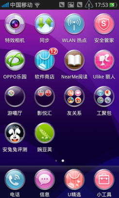 开启OPPO Ulike U701,即刻让小果会心一笑,华美炫丽的界面非常赏心悦目,圈圈软件图标设计就如施华洛世奇水晶般尽显时尚魅力与浪漫气息。