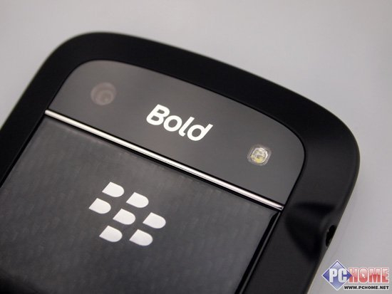 中间部位则是华丽丽的感觉,黑色,光泽,半透明,内面纹理,Bold标志,黑莓标志,分列两边的摄像头和闪光灯,以及一条银色的分割线。这种感觉给人的感觉是非常良好的,尤其是黑色的手机,这种质感更加的令人心喜。