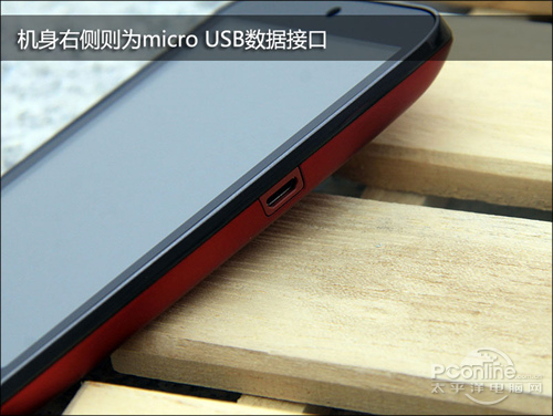 联想乐Phone A580的机身接口部分显得较为实用,能够保证手机操作上的便捷性。首先是机身左侧,手机配置了音量调节键,在机身右侧则为micro USB数据接口。而位于机身顶部的按键最为丰富,左至右依次为3.5mm耳机插口和电源/解锁键。整体机身按键大小合适,回馈力良好,而且半红半黑的风格 也使得手机拥有很前卫的感觉。