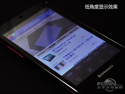 对于千元级的的手机来说,拥有4.3英寸IPS屏幕的联想乐Phone A580是非常难得的。屏幕分辨率为WVGA(800x480像素)级别,显示效果不错,触控感觉也比较流畅,屏幕视角宽阔,无论是浏览网页、看电影又或 者是玩游戏时,都能够带来非常不错的视觉享受。