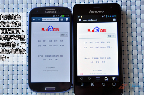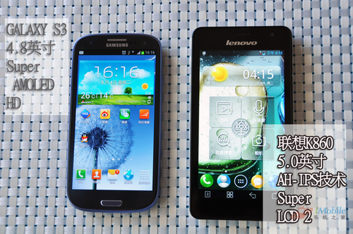 左侧为联想K860 右侧为三星S3