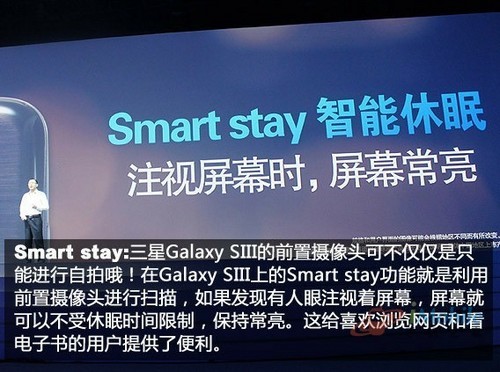 三星S3退出了Direct call(体感拨号)的全新功能,这个功能非常好解释,就是如果我们在与某人进行短信对话,而这时你却想直接给这个人打电话了,你只需要将GALAXY S III放到耳边,手机就会自动拨通当前联系人的号码。还有出如此类的很多功能,如盯着屏幕看前置摄像头会识别的的眼睛,屏幕不会自动关闭,细微之处非常方便。