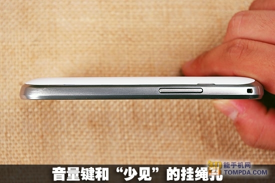 该机的背面采用了类似于类肤质图层的感觉,摸上去手感细腻舒适,而且有一定的防滑效果。