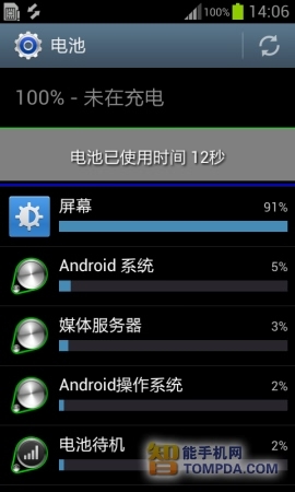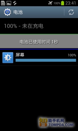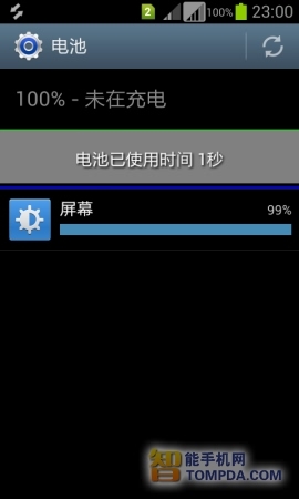 在插入一张SIM卡的情况下,三星S7562待机11个小时之后,电量由100%下降到了95%。