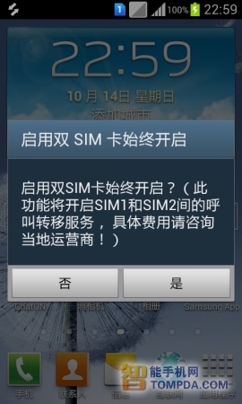 除了多出一些关于双卡双待方面的设定,在其他方面差别并不大,应用的图标以及大部分小部件都散发着浓郁的三星“味道”。