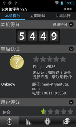 搭载MT6577双核1GHz处理器的飞利浦W536的性能表现如何呢?下面一起来看一看。