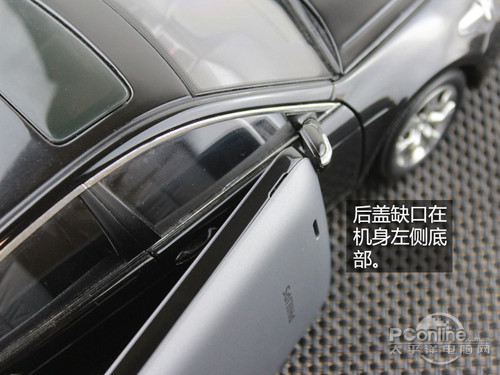 飞利浦W536的左右侧设计比较简洁,右侧设有音量键,左侧下方是打开后盖的缺口。
