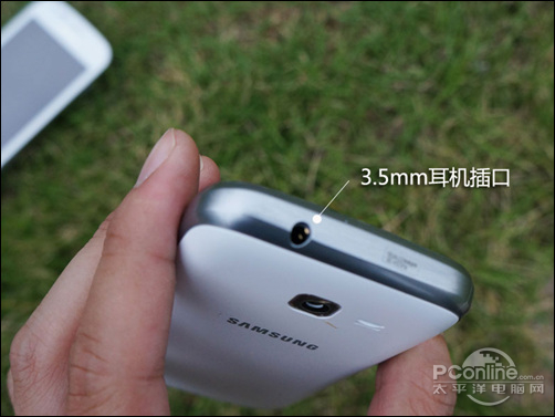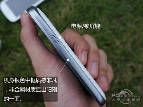 在侧面设计中,机身中框是一大亮点,银色的非金属材质无论在质感还是卖相上皆表现不错。机身顶部的是一个3.5mm的标准耳机插口。