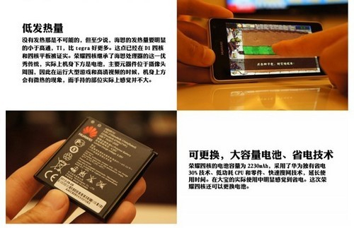 另外,从实际使用来看,在长时间进行数据连接或者游戏时,华为荣耀四核爱享版的机身上部还是会有明显的发热甚至发烫,说“微热”的感觉并不恰当,和散热性表现饱受诟病的小米手机2相比也在伯仲之间。
