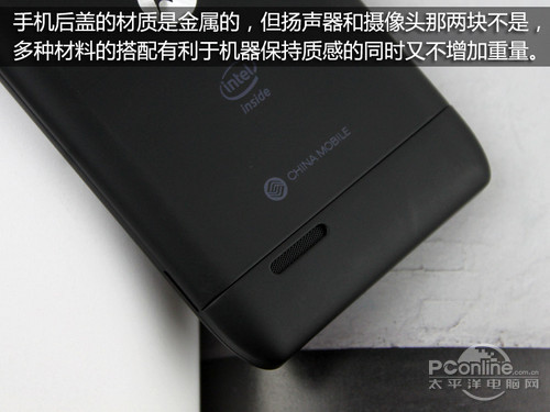 MT788整机金属感很强,但它重量却仍旧控制得很好,仅为120g,这也和其外壳材质分配有很大关系。虽然看起来MT788似乎整机都是采用了一个材质,但你仔细研究一下,就会发现该机只有前面板和后盖是金属的,摄像头和扬声器部分是和电池仓连在一起的,为塑料材质(为了更好的天线性能),这就是为什么它看起来金属一块,但上手却异常得轻。